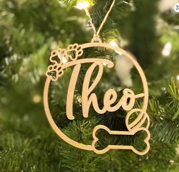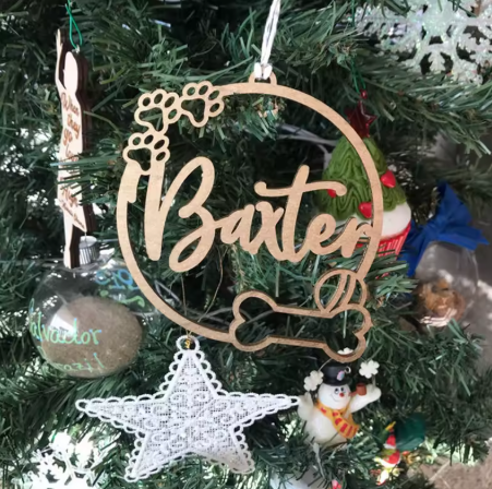Daar vul je de naam van je hond in! Of naam van je partner wat je wilt! Deze naam wordt uitgesneden in de kersthanger! 1 naam per kerstbal! Alleen betaalde bestellingen worden in behandeling genomen!